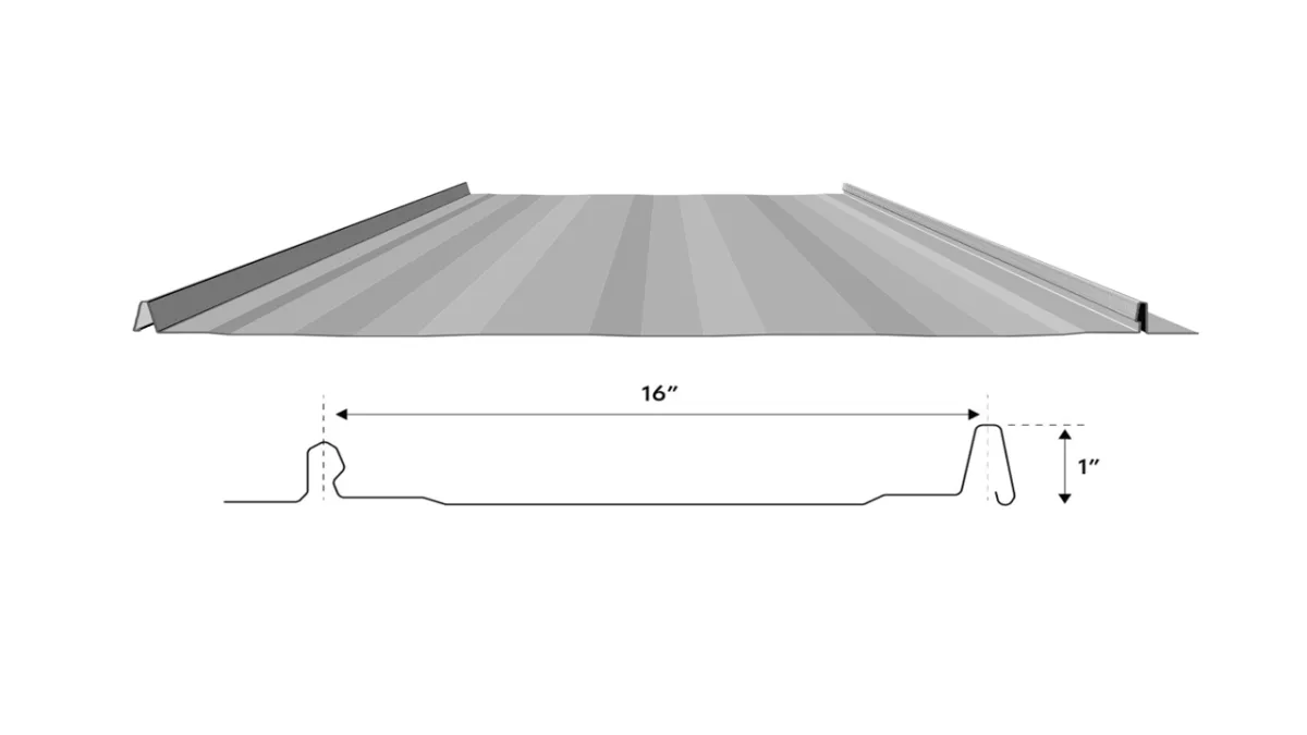 The most popular residential standing seam metal roofing panel on the market today. The panel screws are actually concealed underneath the panel and are not visible. That is what makes this panel unique