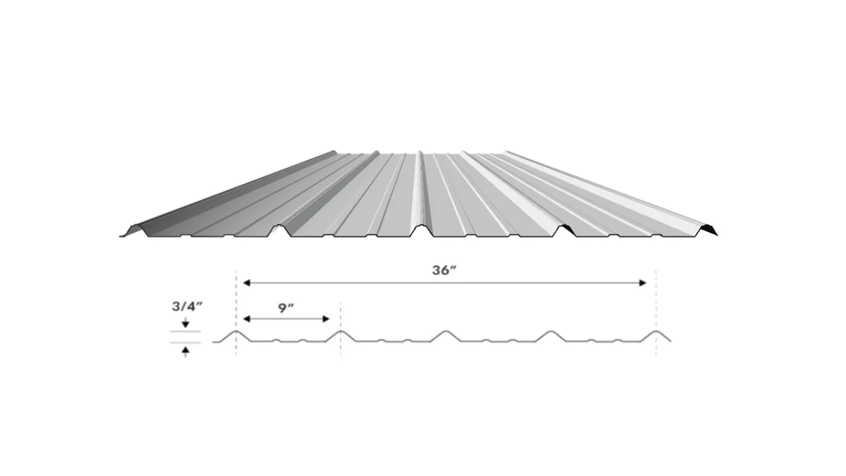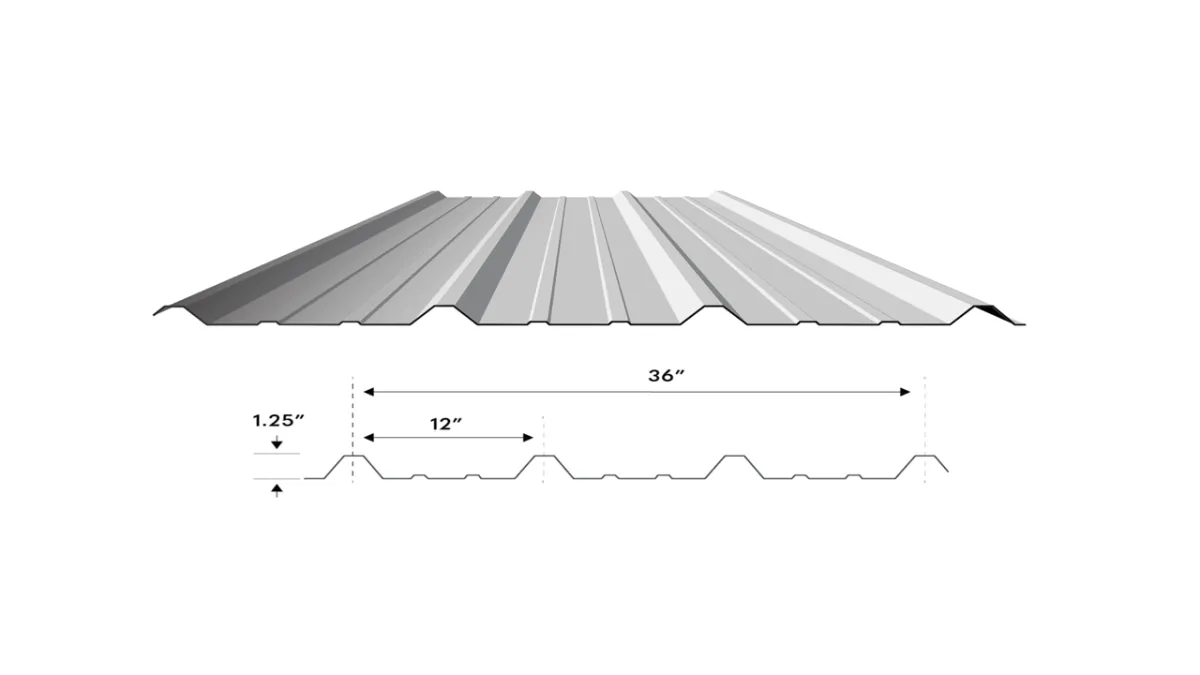 Is a type of exposed fastener metal roofing system that features five V-shaped ribs that are spaced 12 inches apart across the panel. With its classic look, these panels are commonly used on both farming, industrial, and agricultural buildings.
